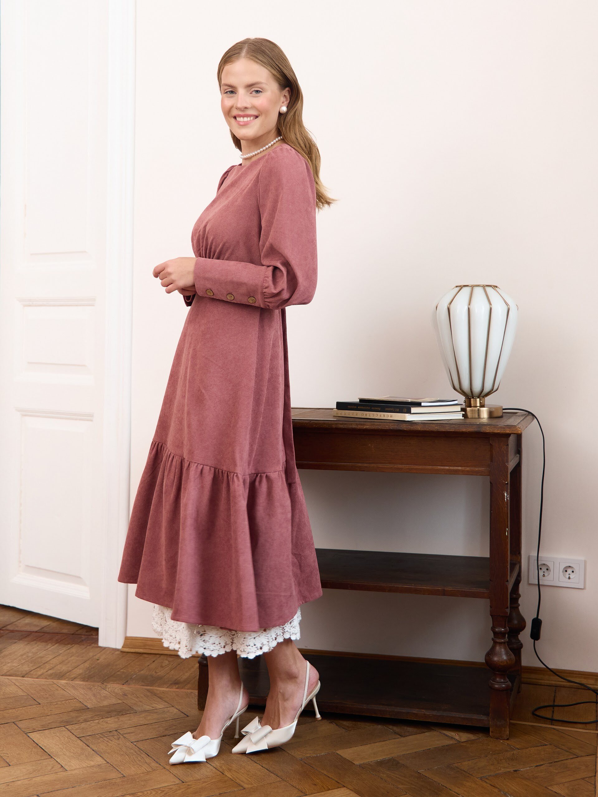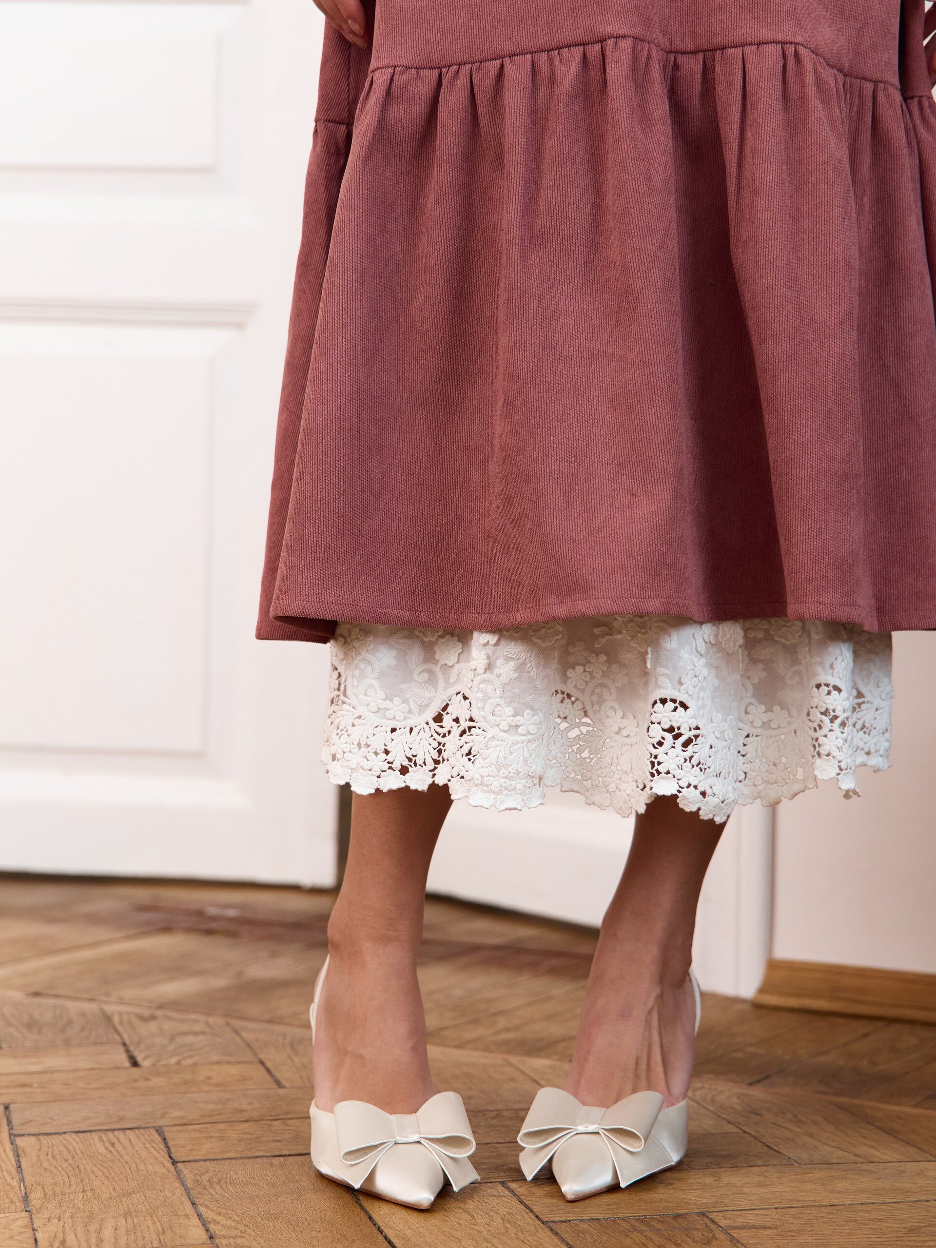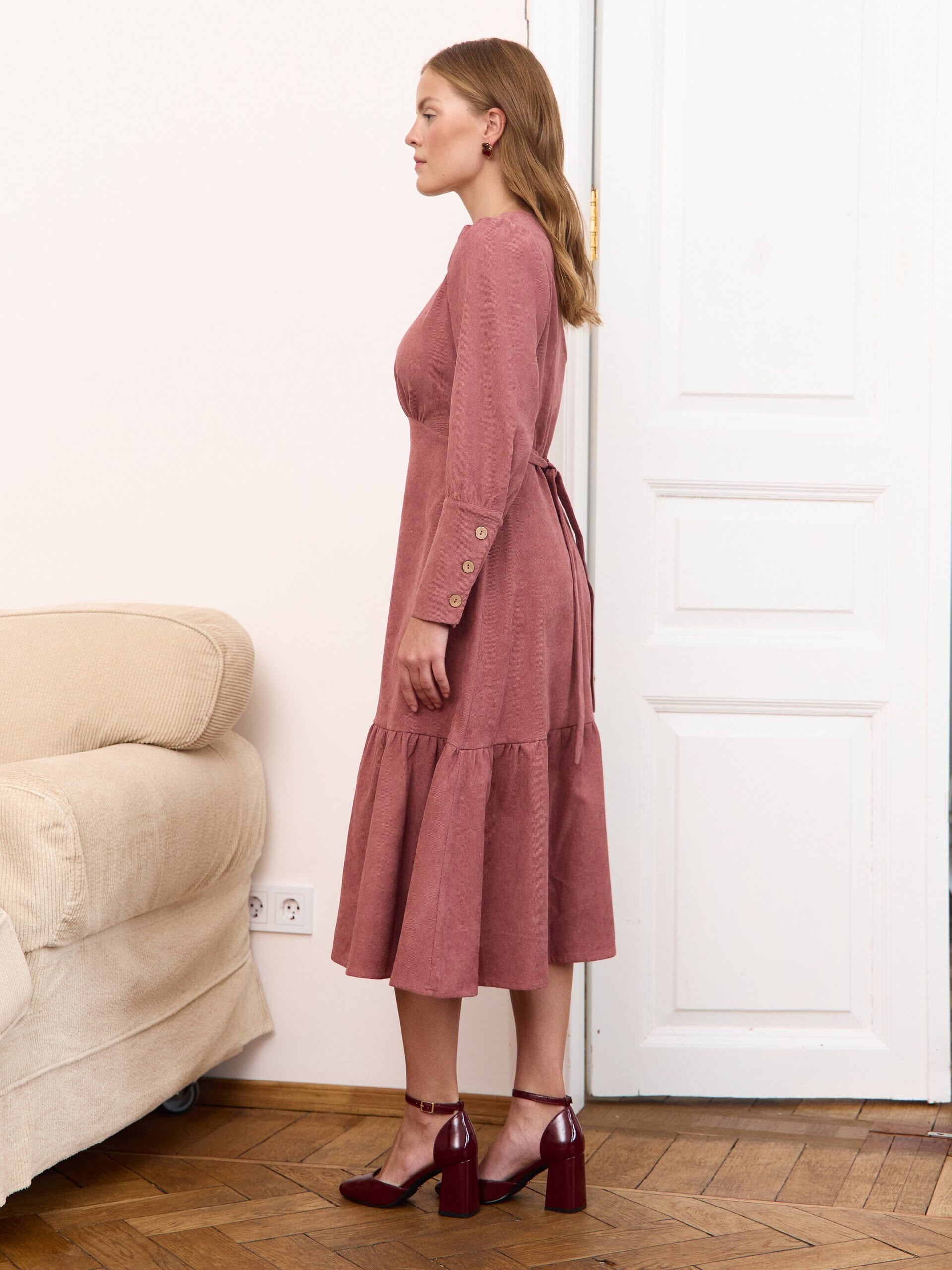 Красное платье с кружевным квадратным вырезом на груди по-настоящему женское, осеннее и длинное (почти в пол, в зависимости от роста). В основе натуральная фланель - 100% хлопок (Ивановский текстиль), благодаря чему ткань дышит. В боковых швах спрятаны удобные карманы с изысканным кружевом. Мягкая ткань благородных оттенков с принтом в мелкий цветочек - красивая и очень женственная. Элегантное платье с орнаментом в русском (славянском) стиле - необычное и нарядное. Крой выполнен в стиле «а силуэт», нежно струящийся по низу. Свободное, чуть пышное и воздушное по юбке, летящее и приталенное по фигуре. Оно хлопковое и легкое, с длинным рукавом, поэтому его можно расценивать как летнее, так и теплое на осень. Длина ниже колена выглядит как миди или даже макси. Придает классическое и немного винтажное настроение. Легкая дымка ретро, щепотка бохо, отголоски моды 19 века. Изделие со сборками на талии и объемными деталями собирает милый образ: одновременно шикарное и базовое. Неудивительно, что вещь видна в подборках пинтерест (pinterest), уверенно держит тренд, остаётся модной, в стиле олд мани. Его берут на свадьбу (подружкам невесты), на роспись в загс. Приходят на торжество, выбирают на крестины и для крещения. Оно удобно для беременных, деликатно скрывающее живот, идеально на выписку из роддома. Закрытое, тактично подойдет в церковь и для храма. Его надевают в школу на 1 сентября как школьное, выбирают на вручение диплома для учителя. Оно уместно для подростка (подростковое, вполне молодежное), подойдет для девушки и для мамы. Удобно для пожилых женщин в возрасте и для бабушки. Подойдет для полных, формата плюс сайз и для невысоких. В быту - повседневное и домашнее. В будни - деловое и офисное решение на работу на каждый день. Будет кстати на корпоратив и на юбилей. Соберёт подруг на девичник, станет эффектным образом для фотосессии, а в отпуске окажется изящной одеждой на выход в ресторан. И да, оно станет прекрасным подарком на день рождения в дни черной пятницы.
