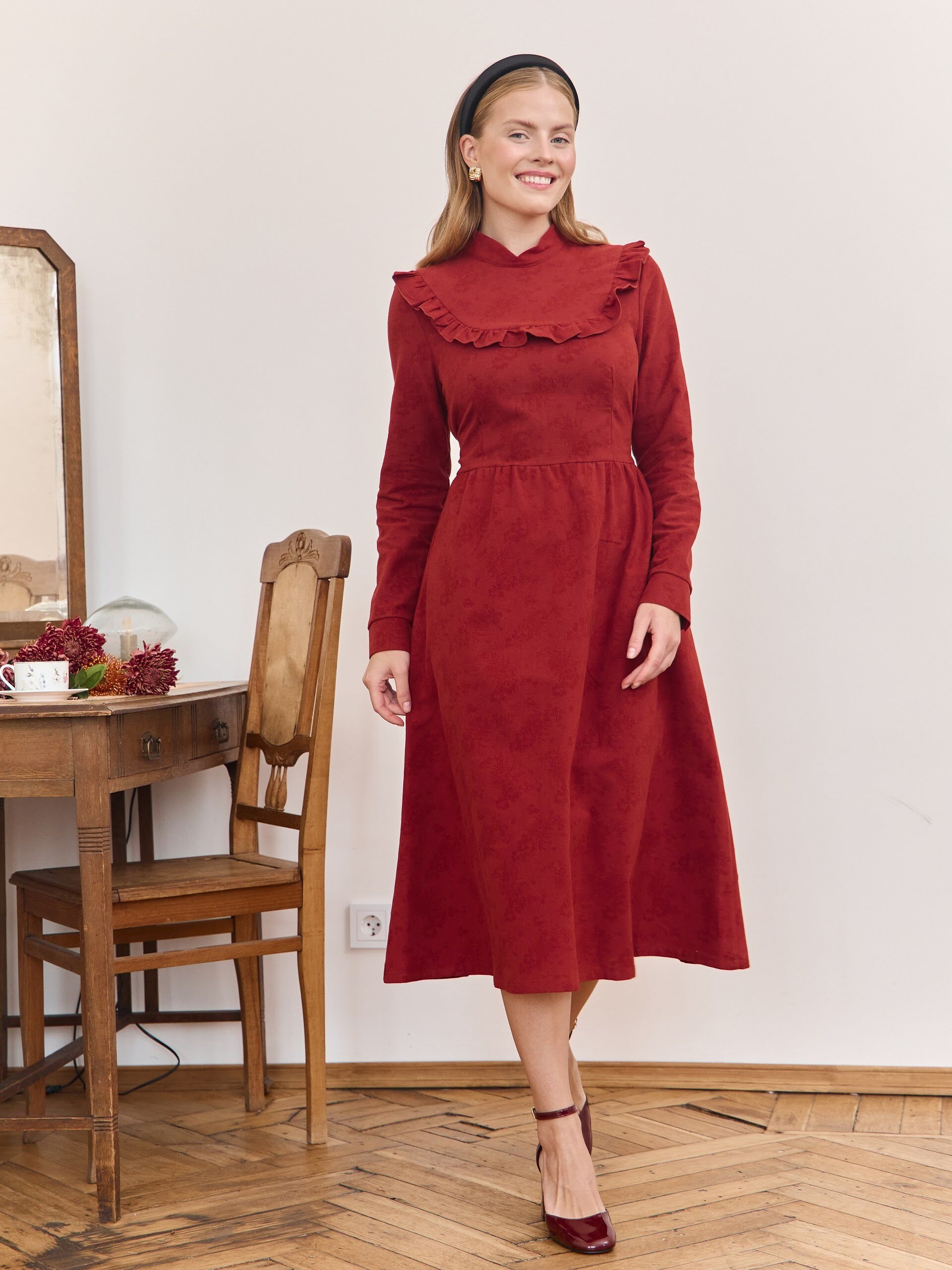Платье из мягкой натуральной фланели, к которой хочется прикасаться. Главный акцент изделия - декольте в виде сердечка. Свободные рукава длины три четверти, собранные у плеча объемным фонариком, создают пышную форму и обеспечивают комфорт в движении. Элегантная сборка спереди по линии талии придаёт естественный объем, подчеркивая силуэт. Пришитый пояс и аккуратная молния на спине. Для большего комфорта в боковых швах незаметные и удобные карманы. Платье имеет А-силуэт и безупречный крой, созданный по нашим авторским лекалам. Обеспечивает идеальную посадку по фигуре. Носить его можно как прохладным летом, так и в любое другое время года, оно универсально. Платье подходит для повседневной носки. Легко комбинируется с подъюбниками и манжетами, создавая очаровательный образ для особых случаев.